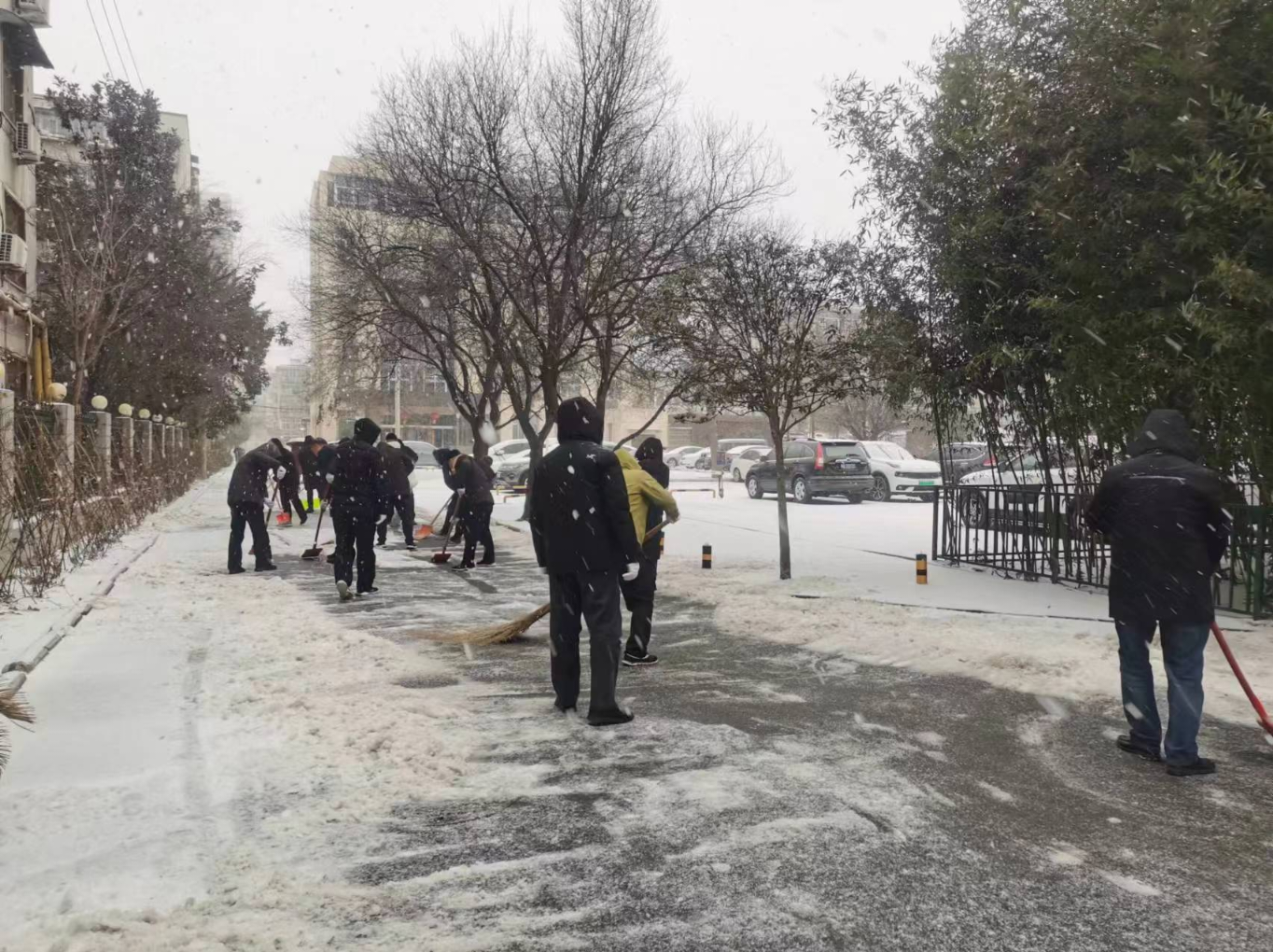 2月20日下午,鄭州迎來了龍年的第一場大雪。道路積雪結(jié)冰給出行帶來極大安全隱患。建材院迅速組織黨員職工開展義務掃雪活動。