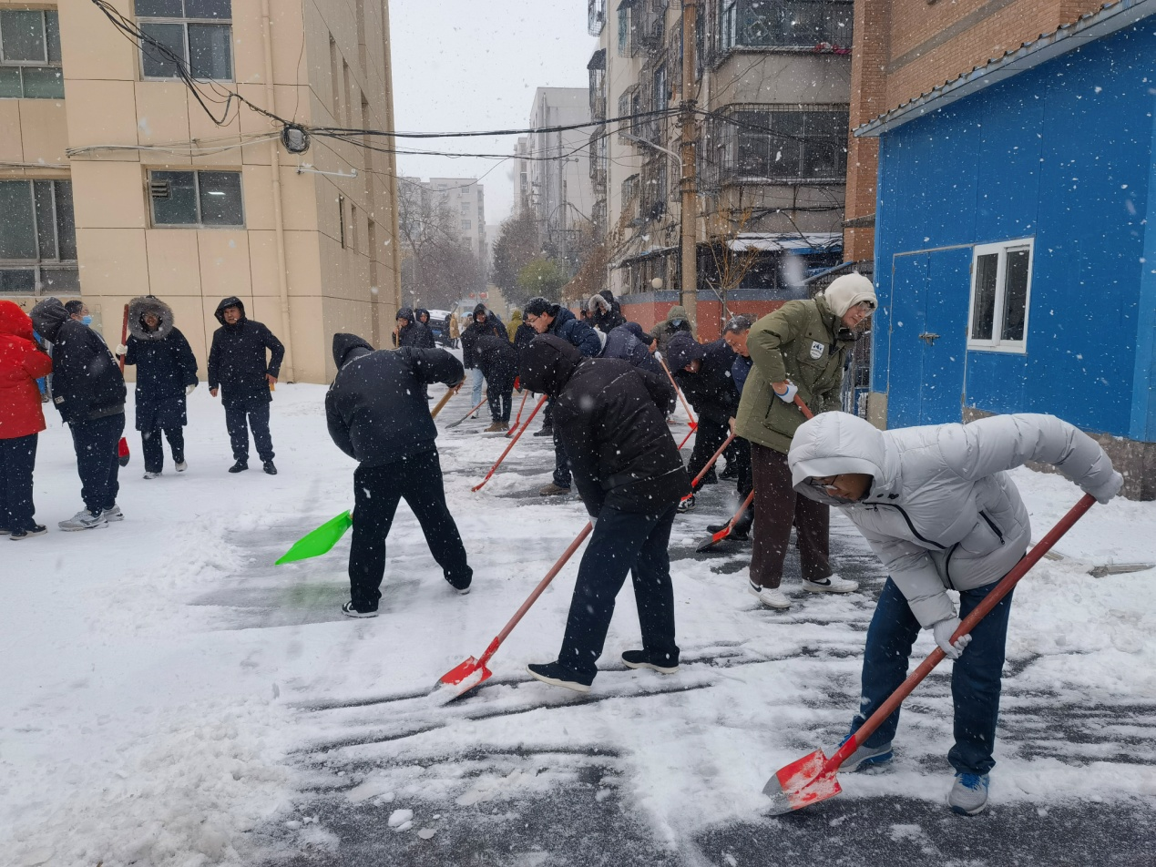 在公司黨委書記、董事長尹青亞的帶領下,60余名黨員職工紛紛拿起鐵鍬、掃帚等勞動工具,開始對公司周邊道路及辦公區(qū)、家屬區(qū)主要道路上的積雪和堅冰進行清理。漫天大雪混雜著冰粒拍在職工的臉上、背上、手上,卻絲毫沒有撼動大家勞動的熱情和腳步,凜冽寒風中三五人一組分梯次進行掃雪除冰作業(yè),鏟的鏟、推的推、掃的掃,大家團結(jié)協(xié)作、干勁十足,忙碌的身影在皚皚白雪中成了一道道靚麗的風景線。